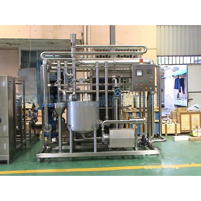 滅菌機(jī)由平衡罐輸入到換熱器內(nèi),在加熱部分與殺過菌的熱物料進(jìn)行換熱后使冷物料溫度升到預(yù)定值,然后通過由蒸汽加熱的水間接加熱到120℃,物料在持溫管中維持所要求的溫度一段時(shí)間進(jìn)行超高溫殺菌,從持溫管出來后與進(jìn)入機(jī)內(nèi)的冷物料進(jìn)行熱交換,后在冷卻段冷卻到預(yù)定的出口溫度,整個(gè)過程均在封閉狀態(tài)下進(jìn)行,達(dá)到保證物料的生物穩(wěn)定性的目的。
